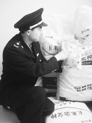 执法人员现场检查发现,涉嫌虚假宣传的玉米种子包装袋存有猫腻:其大包装袋和小包装袋正面都标注有\"都玉988\"的字样,小包装袋的背面却有\"冀玉988