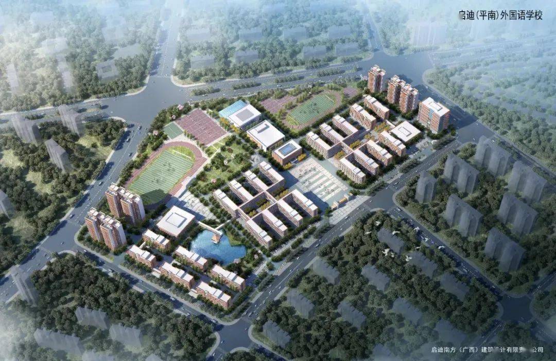 ▲启迪(平南)外国语学校效果图_ 根据协议内容,启迪(平南)外国语学校总投资约_ 亿元,学校涵盖初中部、高中部、国际部、培训研学部,学校招生规模_ 个班约_ 人.