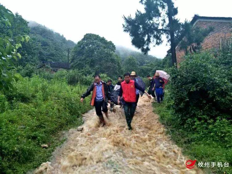 担心房屋经受不住山洪冲击,救援人员将被困者易爱英抱出屋外,由于被困者易爱英长期患病,无法行走,镇村干部、派出所民警找来竹杆通过肩扛手抬的方式,将轮椅当成临时担架,沿着崎岖的山路将易爱英抬下山去.