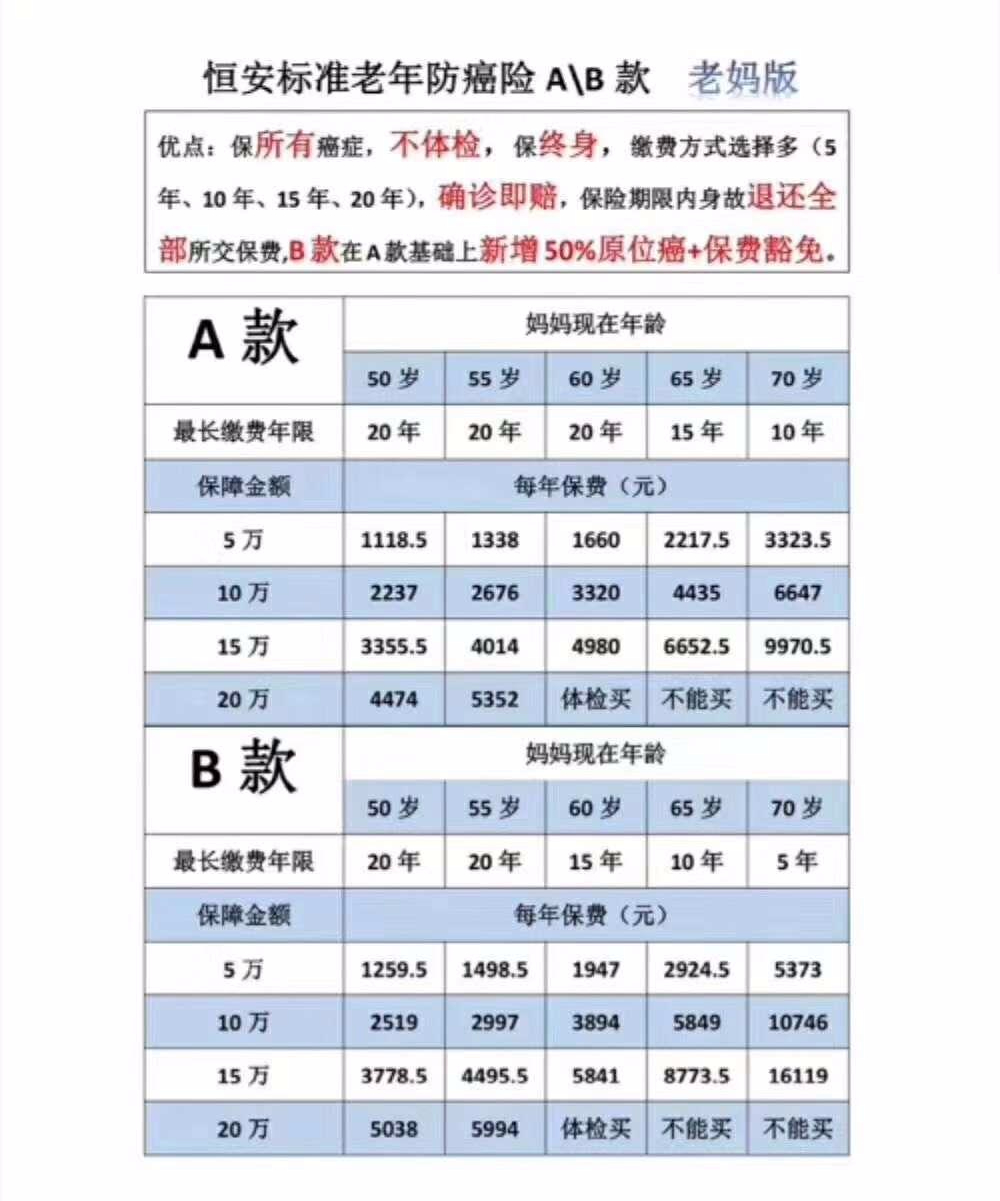 老妈版本的防癌险保费_ 2.审核宽松,容易承保_ 我看过有一个审核的案例,被保人有高血压史,脉压增高,颈椎退行性变的情况,最后还能正常的承保了,审核情况如下:_ a款是仅仅恶性肿瘤的保障,而b款增加了原位癌的保障.