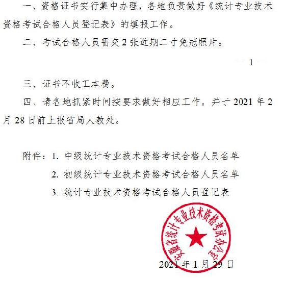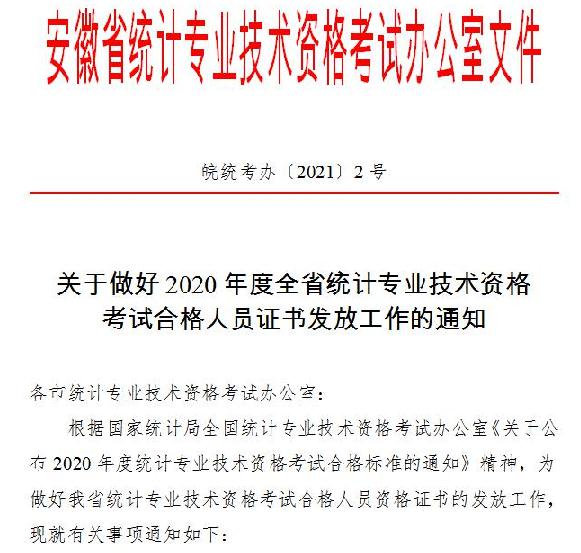 安徽省统计专业技术资格考试办公室关于做好2020年度全省统计专业技术资格考试合格人员证书发放工作的通知