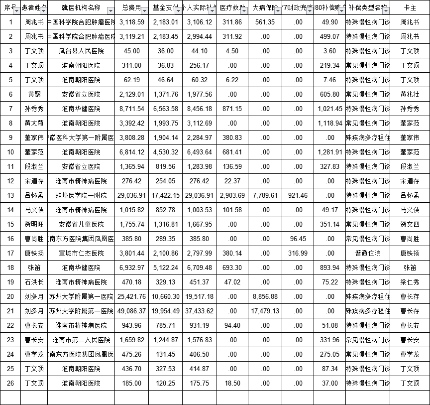 毛集实验区焦岗湖镇贫困户医疗费用财务基金审核表2020年12月 2021年1月 政务公开 淮南市人民政府